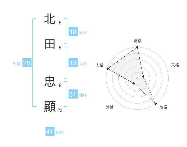 北田 忠顯さんの総格は41画の5点!