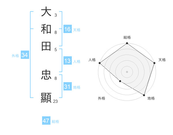 大和田 忠顯さんを姓名の画数から五運を鑑定