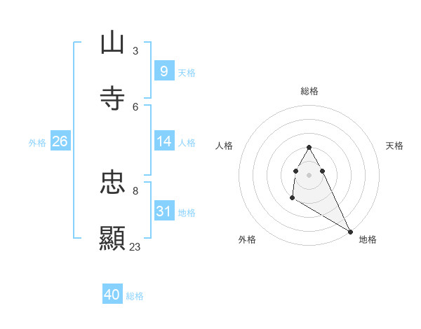 山寺 忠顯さんを姓名の画数から五運を鑑定