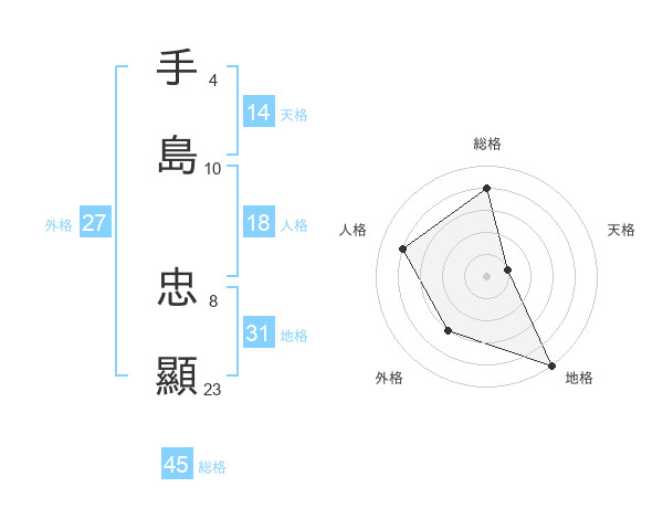手島 忠顯さんの総格は45画の4点!