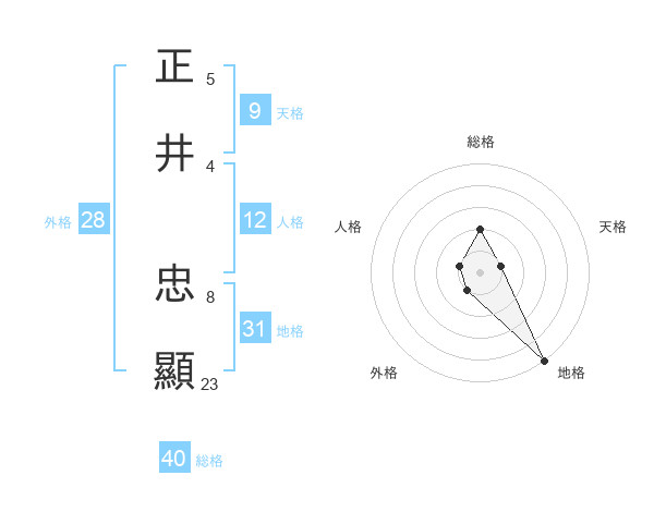 正井 忠顯さんを姓名の画数から五運を鑑定