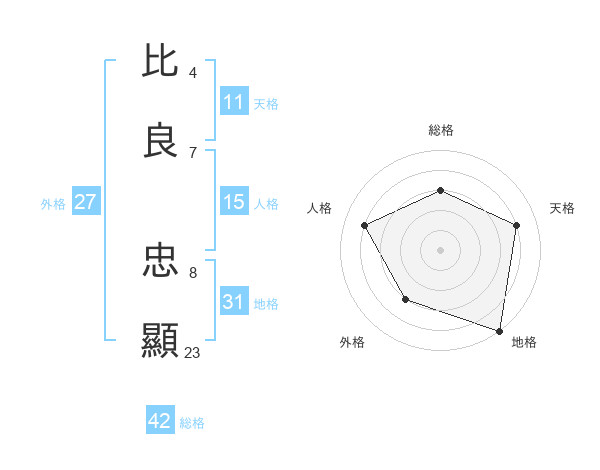 比良 忠顯さんの総格は42画の3点!
