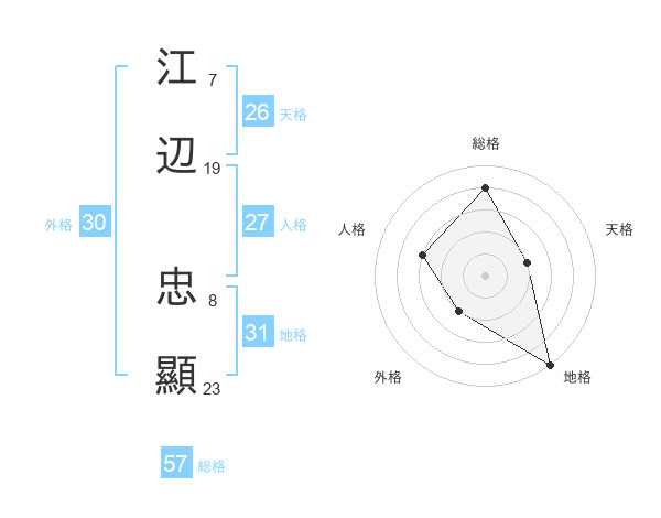 江辺 忠顯さんを姓名の画数から五運を鑑定