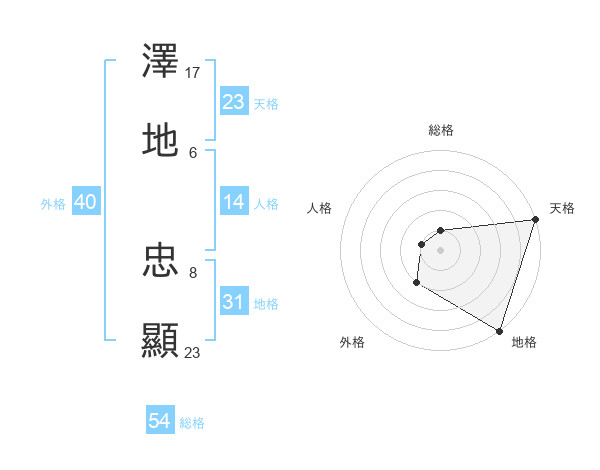 澤地 忠顯さんを姓名の画数から五運を鑑定
