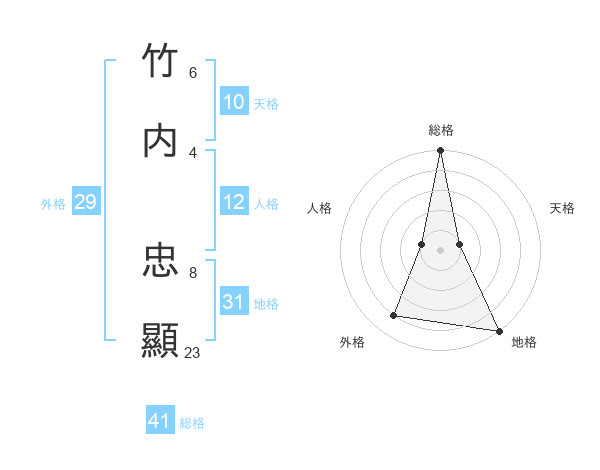 竹内 忠顯さんの総格は41画の5点!