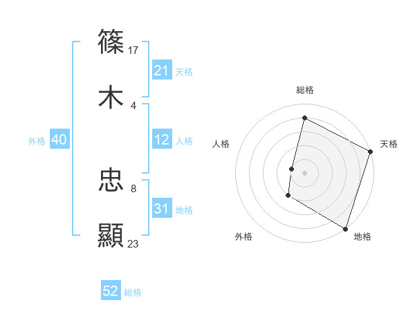 篠木 忠顯さんを姓名の画数から五運を鑑定