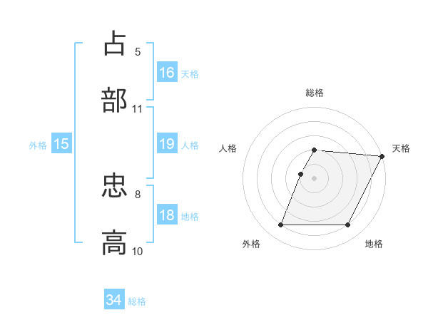 占い結果は姓名判断である以上、良い場合も悪い場合もありますが、決してお名前を誹謗中傷するものでなく、画数の自動計算によって得られたものです。また、本サイトの検索によって得られた鑑定結果で、第三者を誹謗中傷したり名誉を棄損するような行為を禁じます。