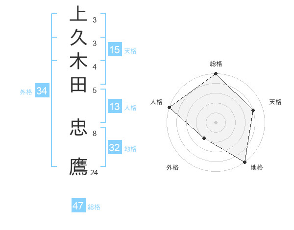 上久木田 忠鷹さんを姓名の画数から五運を鑑定