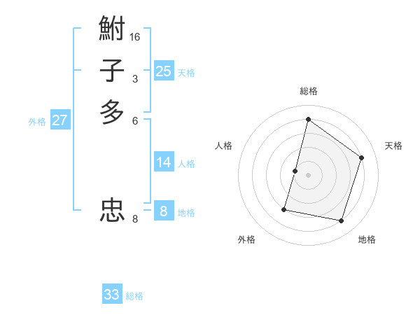 鮒子多 忠さんを姓名の画数から五運を鑑定