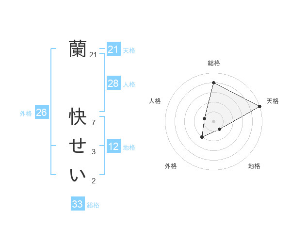 蘭 快せいさんの天格は21画の5点!