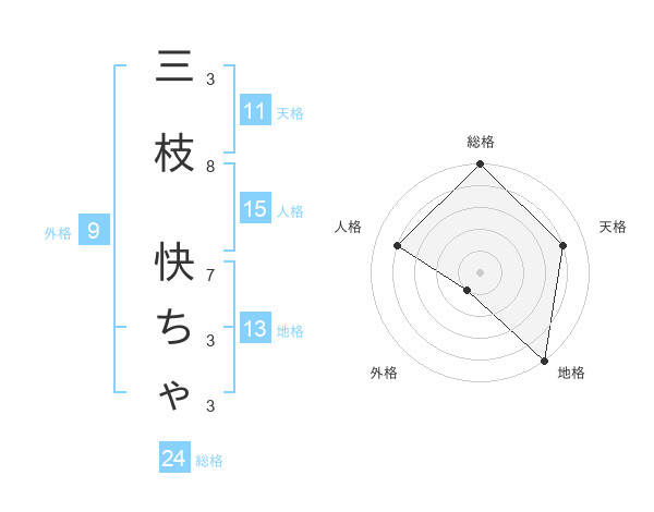 三枝 快ちゃさんの総格は24画の5点!