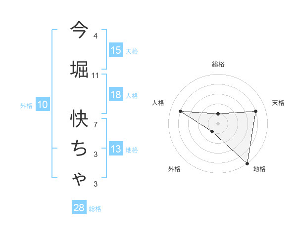 今堀 快ちゃさんの地格は13画の5点!