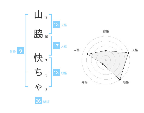 山脇 快ちゃさんを姓名の画数から五運を鑑定