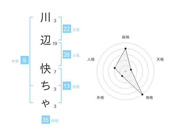 川辺 快ちゃさんを姓名の画数から五運を鑑定
