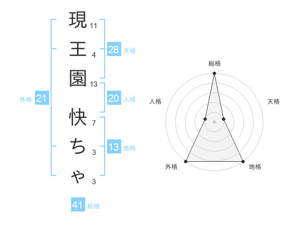 現王園 快ちゃさんの総格は41画の5点!