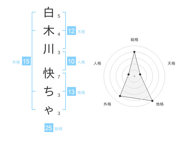 白木川 快ちゃさんを姓名の画数から五運を鑑定
