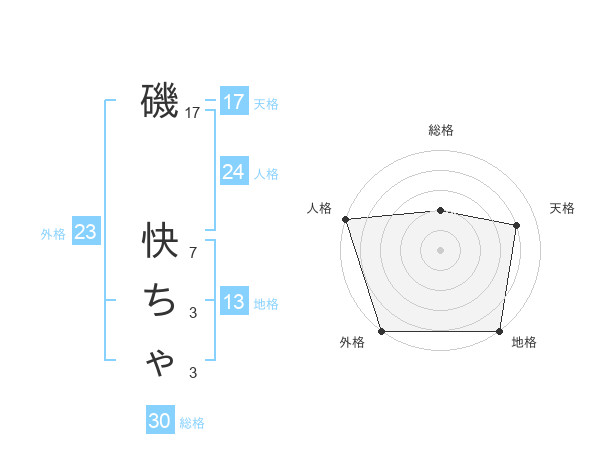 磯 快ちゃさんを姓名の画数から五運を鑑定