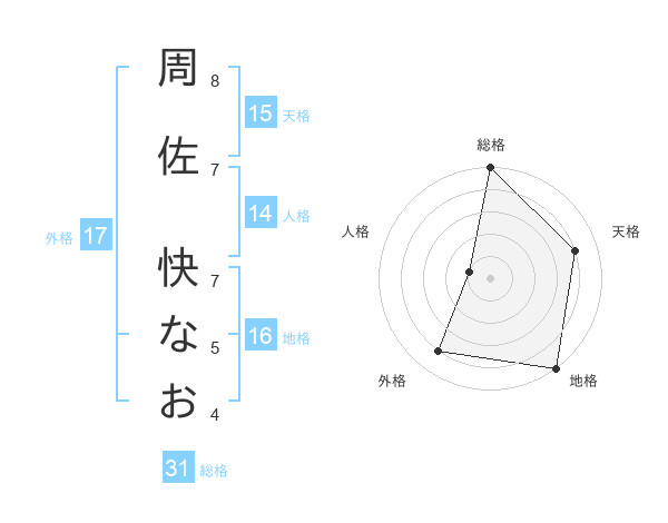 周佐 快なおさんを姓名の画数から五運を鑑定