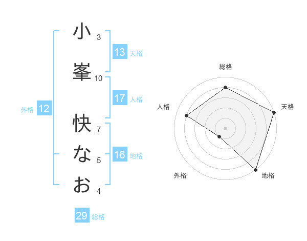 小峯 快なおさんを姓名の画数から五運を鑑定