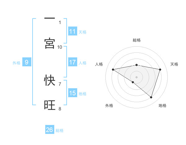 一宮 快旺さんの総格は26画の2点!