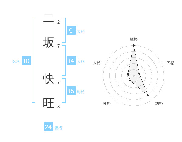 二坂 快旺さんの総格は24画の5点!