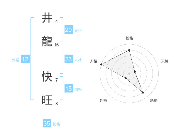 井龍 快旺さんを姓名の画数から五運を鑑定