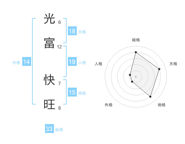 光富 快旺さんの総格は33画の4点!
