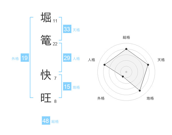 堀篭 快旺さんを姓名の画数から五運を鑑定