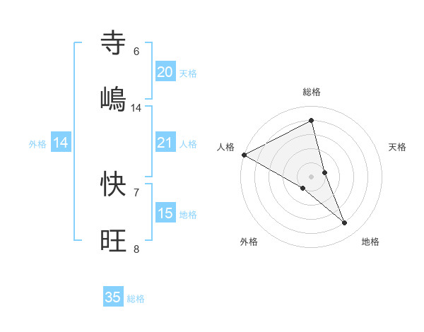 寺嶋 快旺さんを姓名の画数から五運を鑑定