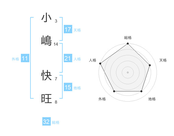 小嶋 快旺さんの総格は32画の5点!