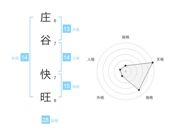 庄谷 快旺さんを姓名の画数から五運を鑑定