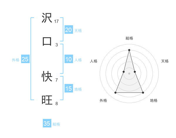 沢口 快旺さんの総格は35画の4点!
