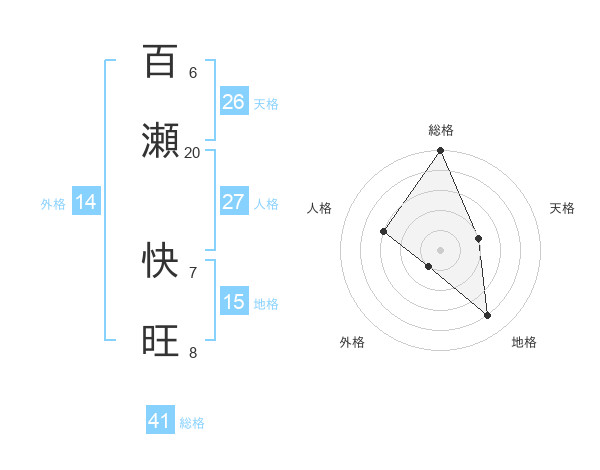 百瀬 快旺さんを姓名の画数から五運を鑑定