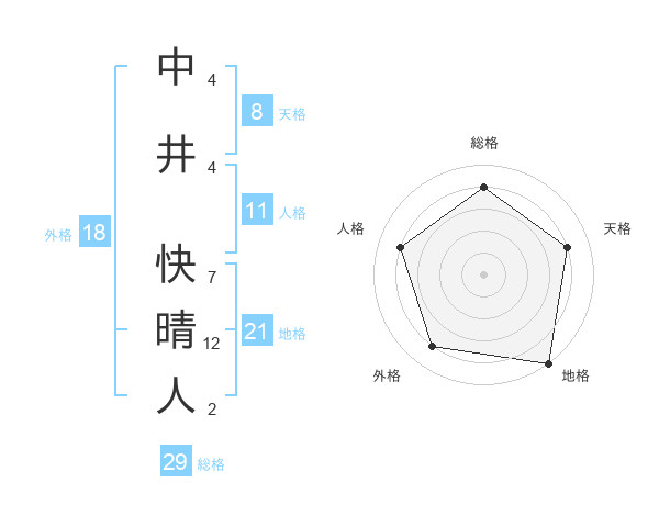 中井 快晴人さんの総格は29画の4点!