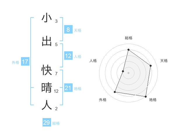 小出 快晴人さんを姓名の画数から五運を鑑定