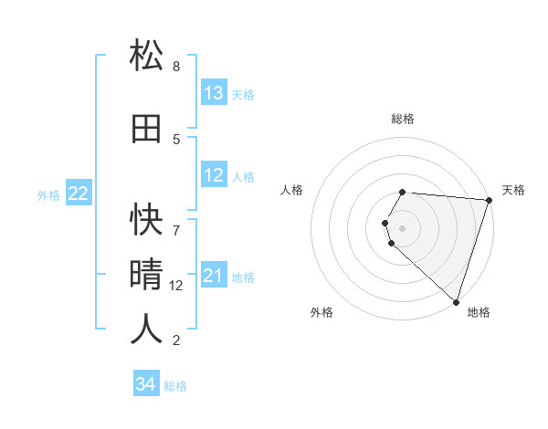 松田 快晴人さんを姓名の画数から五運を鑑定