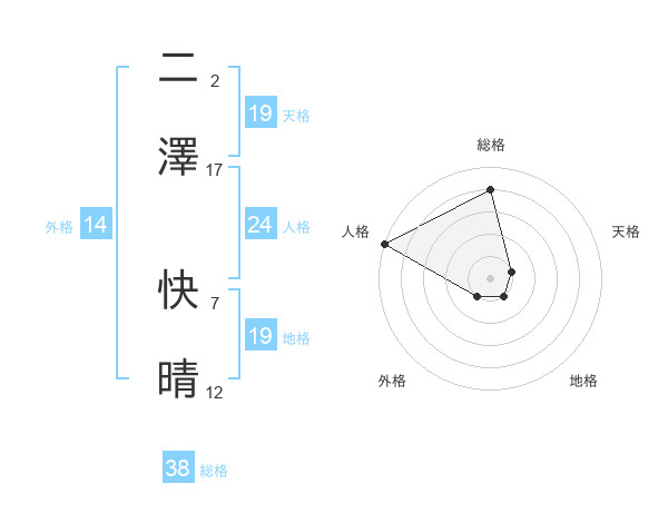 二澤 快晴さんの総格は38画の4点!