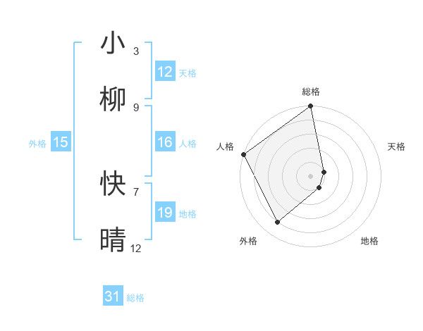 小柳 快晴さんの総格は31画の5点!