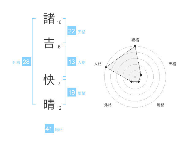 諸吉 快晴さんを姓名の画数から五運を鑑定
