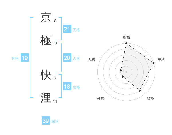 京極 快浬さんの総格は39画の5点!