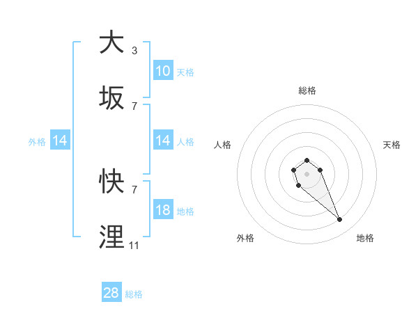 大坂 快浬さんの総格は28画の1点!
