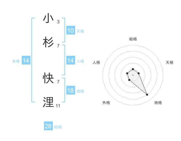 小杉 快浬さんの総格は28画の1点!
