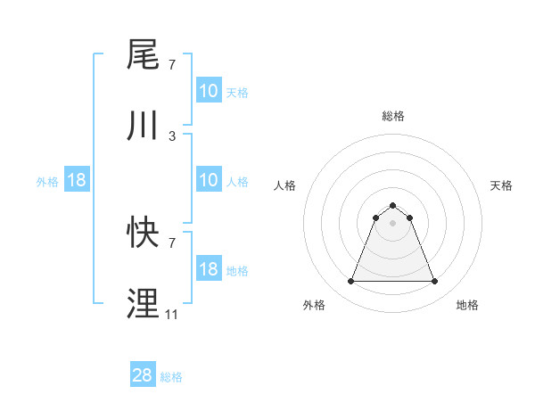 尾川 快浬さんの総格は28画の1点!
