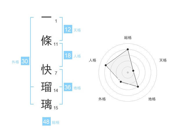一條 快瑠璃さんを姓名の画数から五運を鑑定