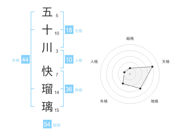 五十川 快瑠璃さんを姓名の画数から五運を鑑定
