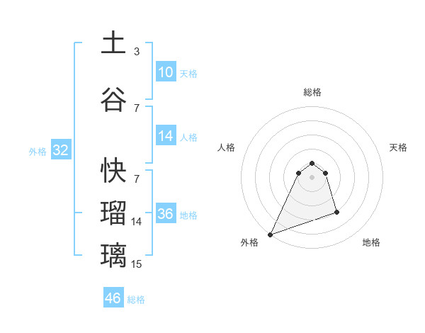 土谷 快瑠璃さんを姓名の画数から五運を鑑定