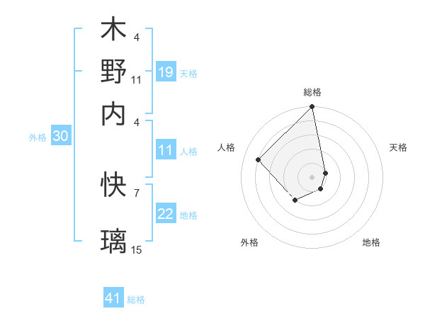 木野内 快璃さんの総格は41画の5点!
