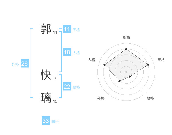 郭 快璃さんの総格は33画の4点!