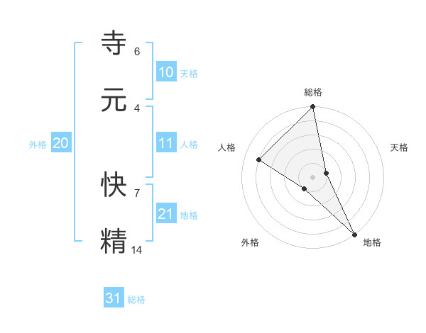 寺元 快精さんの地格は21画の5点!
