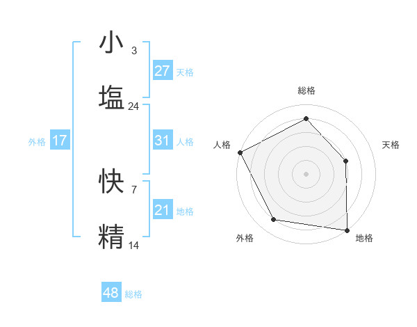 小塩 快精さんの総格は48画の4点!